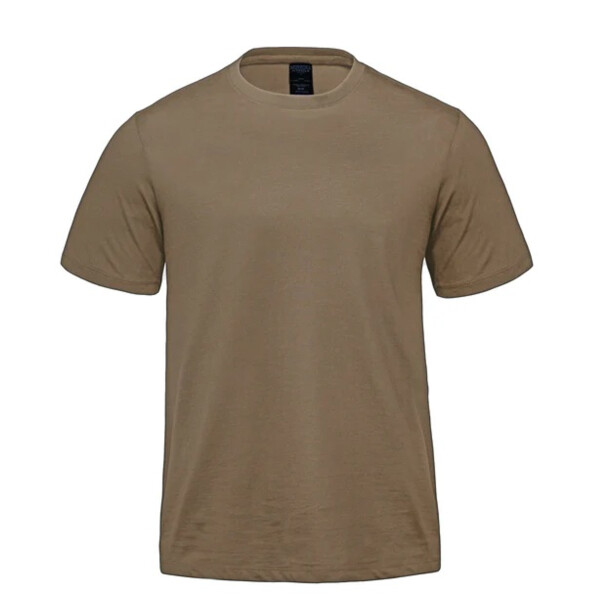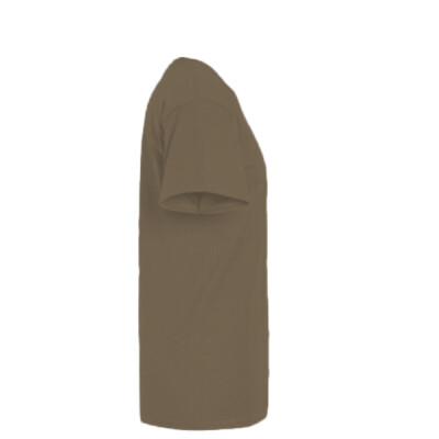 160 GSM - 4.7oz/yd2 - 8 oz./lin. yd. Solids - 100% certified organic cotton jersey, Heathers - 80% certified organic cotton, 20% polyester jersey. 28 single combed compacted yarn. Rib knit neckline with spandex for shape retention. Jersey knit back neck tape. Tear-away label. Side seamed. Crewneck for Adult and Scoop neck for ladies equivalent S05501.